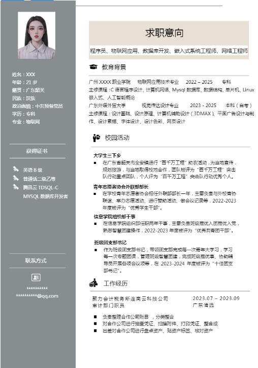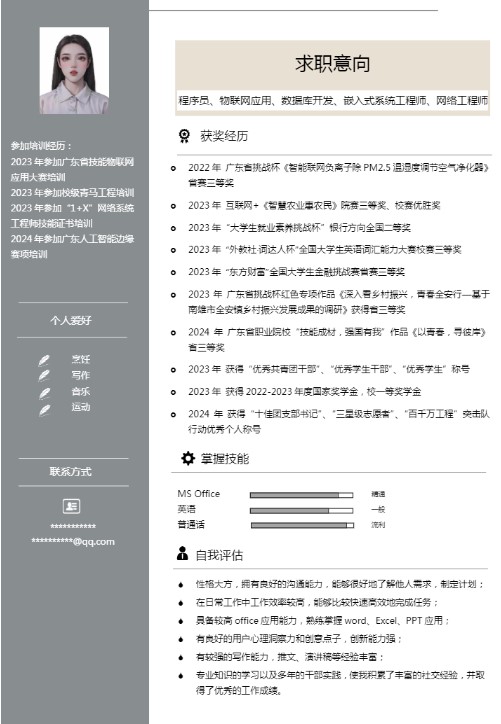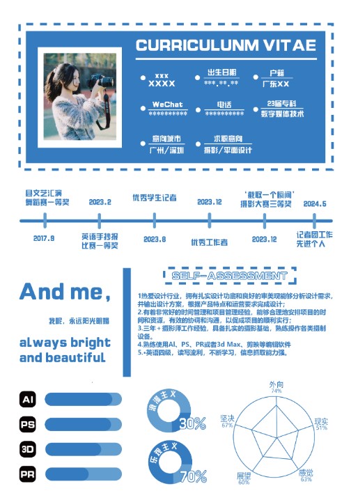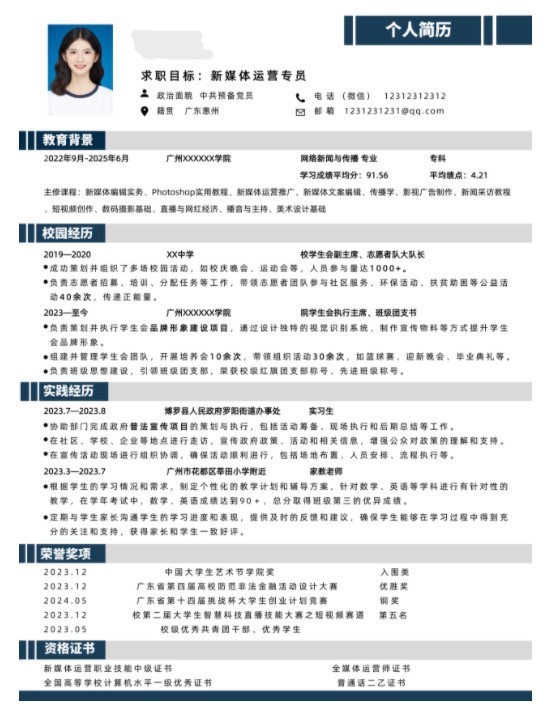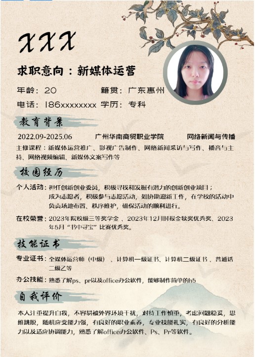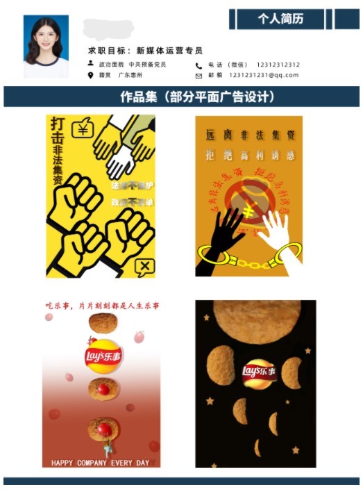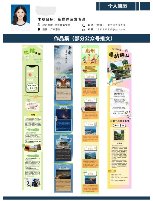 “软件通杯”第七届广东省职业院校简历创意设计大赛于2024年5月20日圆满结束,活动超过60所职业院校图书馆积极参与。我校共计获得优秀作品奖10名,点击链接https://rjt.softtone.cn/跳转到大赛网站,可查看所有的获奖作品,以下是我校的获奖名单以及部分获奖作品展示: