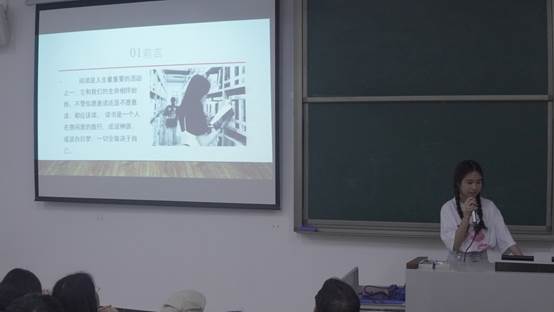 十位参赛选手顺序上台讲解,配合着PPT讲解着书中的情节,自己的独特见解。他们用精良制作的PPT,自信的侃侃而谈,征服了台下观众们的心。尽管有些选手有所失误,紧张,但是我们相信,他们每个人都是最棒的。