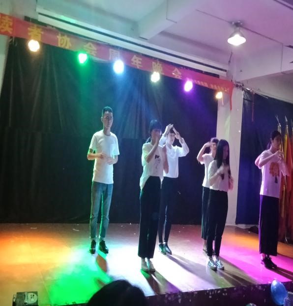 晚会以读者协会两年发展历程的视频开场,展现了读者协会两年来风雨兼程、硕果累累,勾起在场所有的成员对协会深厚的感激与祝福之情。紧接着正副会上场发言,意在祝福协会生日快乐并鼓舞下一届继续顽强拼搏,奋力前进。