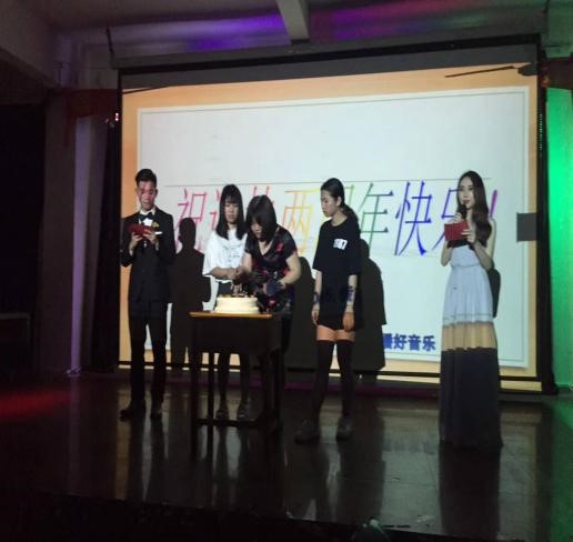 庆典晚会的气氛在声乐社的《退》中推向高潮,在缓缓的旋律中一个写有“祝读协两周年生日快乐”的大蛋糕被小心翼翼的搬出来。刘付霞老师、正副会将它切开,画面定格在这个温暖的瞬间。到此,两周年庆典晚会圆满成功。